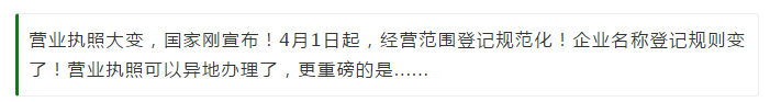 1、各地市場監(jiān)管部門自2021年4月1日起在全國范圍內(nèi)全面開展經(jīng)營范圍登記規(guī)范化工作,有條件的地方可提前開展相關(guān)工作。