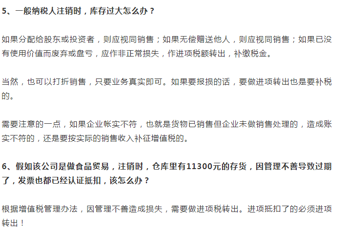 辦理注銷,沒有出售的存貨應(yīng)分配給股東或投資者,這種行為在增值稅上屬于視同銷售。 注意: