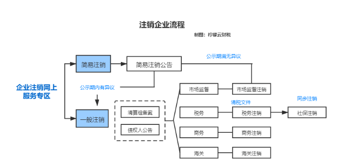 為簡易注銷和一般注銷這兩類,流程如圖: